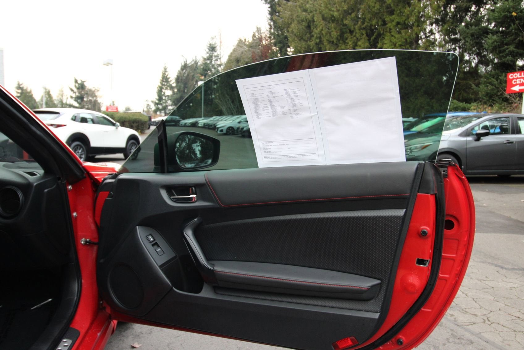 - Cloth Upholstery w/Red Stitching