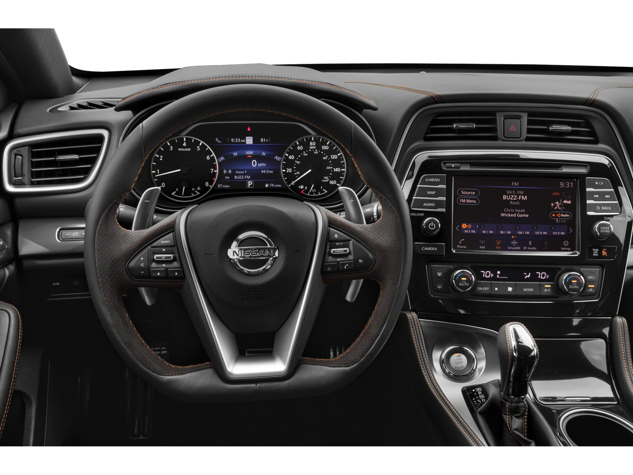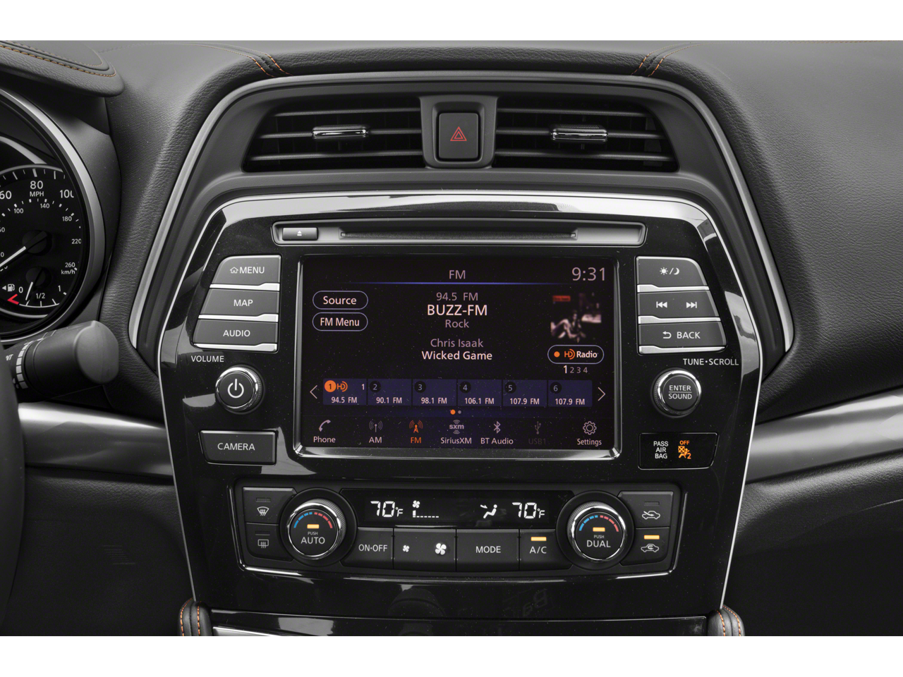 - Radio: AM/FM/CD Audio System w/Navigation -inc: 11 speaker Bose sound system, rear USB ports (charge only, 1 Type-A, 1 Type-C), Nissan door to door navigation w/3D building graphics and satellite imagery, HD radio, SiriusXM Travel Link (weather, fuel prices, movie listings, stock info, sports and parking), SiriusXM Traffic, MP3/WMA reader, NissanConnect featuring Apple CarPlay and Android Auto, 8" color display w/multi-touch control, 2 front illuminated USB connection ports (1 Type-A, 1 Type-C) for iPod interface and other compatible devices, Bluetooth® hands-free phone system, streaming audio via Bluetooth®, hands-free text messaging assistant, swipe to meter functionality, SiriusXM satellite radio w/advanced audio features and auxiliary audio input jack
